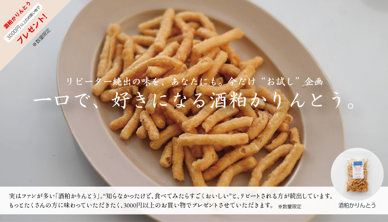 最近の投稿RECENT POSTS 2026年03月27日 NEW無くなり次第終了!3,000円(税込)以上ご購入で『酒粕かりんとう』プレゼント中 2026年02月17日100均グッズで可愛く変身!ボンボン飴ギフト 2026年02月16日【お支払い方法変更のお知らせ】 カテゴリーCATEGORIES お客様の声 お知らせ お菓子図書館 カシデリメディア情報 こんぺいとうアート情報 こんぺいとうアートイベント皆様の声 プレスリリース メディア情報 催事・展示会情報 幸悦庵便り(チラシ、お知らせ) 食べ方提案 ハムスターモナカ 未分類 金平糖アート型紙 月別アーカイブARCHIVES 月を選択 2026.03 (1) 2026.02 (3) 2026.01 (1) 2025.12 (3) 2025.11 (1) 2025.10 (1) 2025.09 (1) 2025.08 (2) 2025.07 (4) 2025.06 (1) 2025.05 (1) 2025.04 (1) 2025.02 (1) 2025.01 (3) 2024.12 (5) 2024.11 (2) 2024.10 (2) 2024.08 (3) 2024.07 (5) 2024.06 (1) 2024.05 (10) 2024.04 (4) 2024.03 (7) 2024.02 (6) 2024.01 (3) 2023.12 (3) 2023.11 (2) 2023.09 (3) 2023.06 (1) 2023.05 (2) 2023.04 (1) 2023.02 (6) 2023.01 (8) 2022.12 (6) 2022.11 (3) 2022.10 (4) 2022.09 (5) 2022.08 (3) 2022.07 (3) 2022.05 (4) 2022.04 (5) 2022.03 (3) 2022.02 (6) 2022.01 (3) 2021.12 (6) 2021.11 (7) 2021.10 (8) 2021.09 (4) 2021.08 (7) 2021.07 (7) 2021.06 (5) 2021.05 (5) 2021.04 (6) 2021.03 (5) 2021.02 (4) 2021.01 (5) 2020.12 (7) 2020.11 (10) 2020.10 (6) 2020.09 (4) 2020.08 (6) 2020.07 (8) 2020.06 (6) 2020.05 (6) 2020.04 (6) 2020.03 (4) 2020.02 (4) 2020.01 (4) 2019.12 (6) 2019.11 (5) 2019.10 (5) 2019.09 (8) 2019.08 (4) 2019.07 (5) 2019.06 (5) 2019.05 (4) 2019.04 (6) 2019.03 (7) 2019.02 (6) 2019.01 (4) 2018.12 (5) 2018.11 (7) 2018.10 (10) 2018.09 (6) 2018.08 (9) 2018.07 (11) 2018.06 (9) 2018.05 (9) 2018.04 (5) 2018.03 (5) 2018.02 (5) 2018.01 (4) 2017.12 (8) 2017.11 (7) 2017.10 (4) 2017.09 (5) 2017.08 (7) 2017.07 (8) 2017.06 (5) 2017.05 (7) 2017.04 (5) 2017.03 (5) 2017.02 (4) 2017.01 (4) 2016.12 (16) 2016.11 (7) 2016.10 (9) 2016.09 (2) 2016.08 (1) 2016.06 (1) 2016.05 (1) 2016.04 (5) 2016.03 (3) 2016.02 (7) 2016.01 (4) 2015.12 (7) 2015.11 (4) 2015.10 (5) 2015.09 (6) 2015.08 (4) 2015.07 (1) 2015.06 (4) 2015.05 (8) 2015.04 (12) 2015.03 (11) 2015.02 (4) 2015.01 (3) 2014.12 (1) 2014.11 (7) 2014.10 (4) 2014.09 (7) 2014.08 (4) 2014.07 (2) 2014.06 (14) 2014.05 (28) 2014.04 (14) 2014.03 (7) 2014.02 (7) 2014.01 (15) 2013.12 (14) 2013.11 (14) 2013.10 (10) 2013.09 (11) 2013.08 (9) 2013.07 (11) 2013.06 (8) 2013.05 (11) 2013.04 (18) 2013.03 (15) 2013.02 (14) 2013.01 (15) 2012.12 (8) 2012.11 (2) 2012.10 (3) 2012.09 (1) 2012.08 (1) 2012.07 (2) 2012.06 (1) 2012.05 (6) 2012.04 (5) 2012.03 (8) 2012.02 (5) 2012.01 (7) 2011.12 (10) 2011.11 (11) 2011.10 (3) 2011.09 (8) 2011.08 (1) 2011.07 (2) 2011.06 (2) 2011.05 (4) 2011.04 (7) 2011.03 (6) 2011.02 (7) 2011.01 (14) 2010.12 (6) 2010.11 (8) 2010.10 (1) 2010.09 (4) 2010.08 (4) 2010.07 (5) 2010.06 (3) 2010.05 (5) 2010.04 (6) 2010.03 (4) お知らせnews 無くなり次第終了!3,000円(税込)以上ご購入で『酒粕かりんとう』プレゼント中 2026年03月27日 NEW 京都・佐々木酒造の“新酒の酒粕”を使った、毎年大人気のかりんとう ◆ふわっと広がる、やさしい甘さと香り◆ “酒粕かりんとう”は、ひと口食べた瞬間にふわっと広がるやさしい甘さと香りが魅力です。「大人のおやつって、こういうことか…」と感じていただける、こだわりの味わい。お好きなお飲み物と合わせると、ほっと心がほどけるようなご褒美時間になります。 ◆スタッフにもファンが多い理由◆ 「ほんのり香る酒粕の風味がクセになる」「甘さ控えめで気づいたら袋が軽い…」「ザクっと食感が新鮮で止まらない」と、今年もリピート希望の声が続出しています! ◆食べるとわかる美味しさ◆ 今年は特に、こんな気持ちを込めて企画しました。まだ食べたことがない方にも知ってほしいいつも買ってくださる方にも、改めて美味しさを楽しんでほしい「来年もあるかな?」と楽しみにしていただける存在でありたいそんな想いをぎゅっと詰め込んだ、期間限定の特別企画です。 ◆3,000円(税込)以上ご購入でプレゼン中◆ 3,000円(税込)以上お買い上げのお客様に、『酒粕かりんとう』を1つプレゼント!※予定数量がなくなり次第終了となります。すでにファンの皆さまには「いつもありがとうございます」の気持ちを込めて。まだの方には「食べたらわかる美味しさ」をぜひ体験してください。 期間限定の特別な味わいを、どうぞお楽しみください♪ 新着情報を見る 関連記事RELATED POSTS 2013.08.05京菓撰 2014.05.15【お菓子図書館】落花小菊 2021.10.12アイスクリームに合うんです♪ 2013.08.07WEB会議