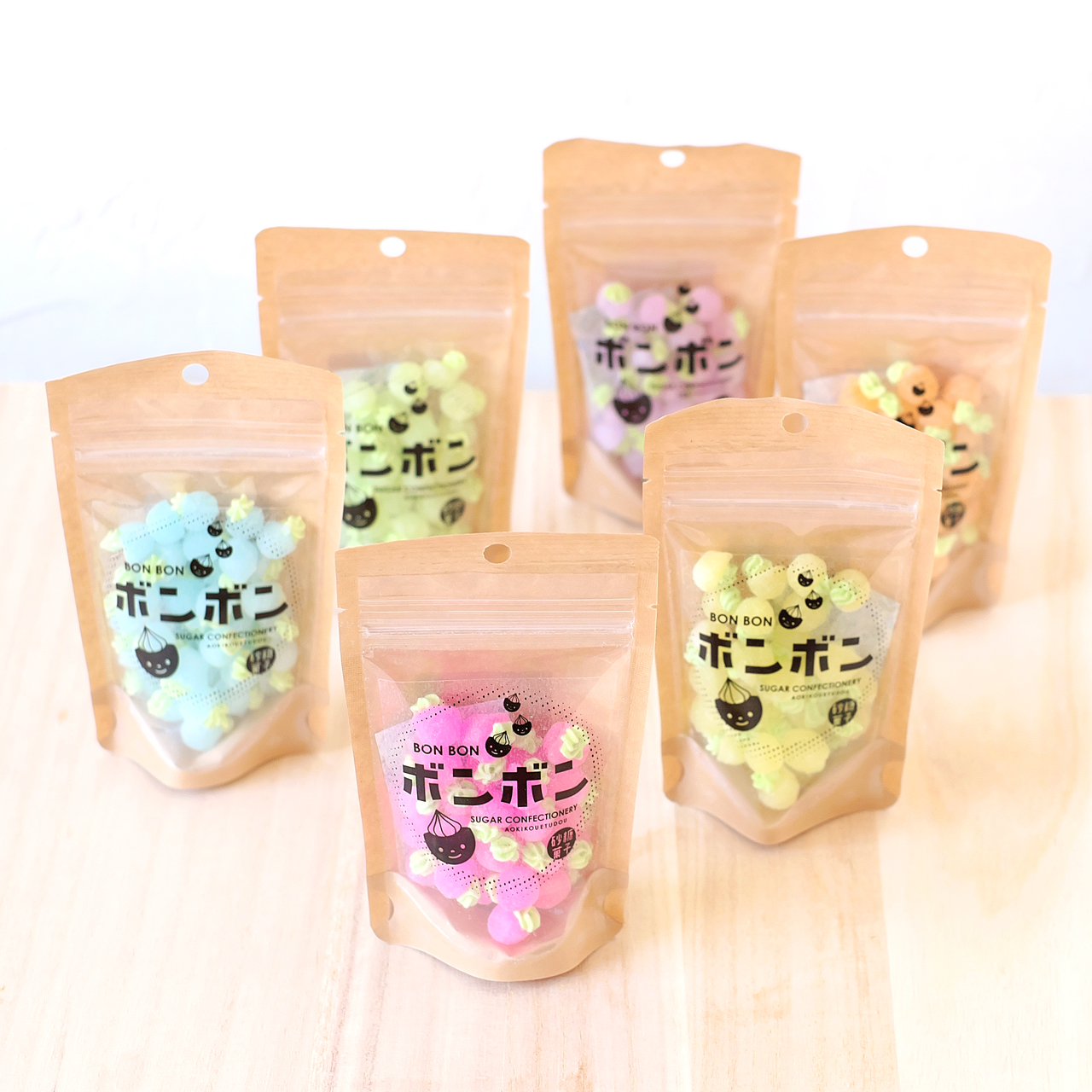 ■ミニいちごボンボン:砂糖(国内製造)、卵白/香料(赤106、黄4、青色1)、ミニレモンボンボン:砂糖(国内製造)、卵白/香料 着色料(黄色4号、青色1号)、ミニマスカットボンボン:砂糖(国内製造)、卵白/香料、着色料(黄4、青1)、ミニオレンジボンボン:砂糖(国内製造)、卵白/香料、着色料(黄色4号、黄色5号、青色1号)、ミニグレープボンボン:砂糖(国内製造)、卵白/香料、着色料(青1、赤106,赤3、黄4)、ミニメロンボンボン:砂糖(国内製造)、卵白/香料、着色料(黄4、青1)