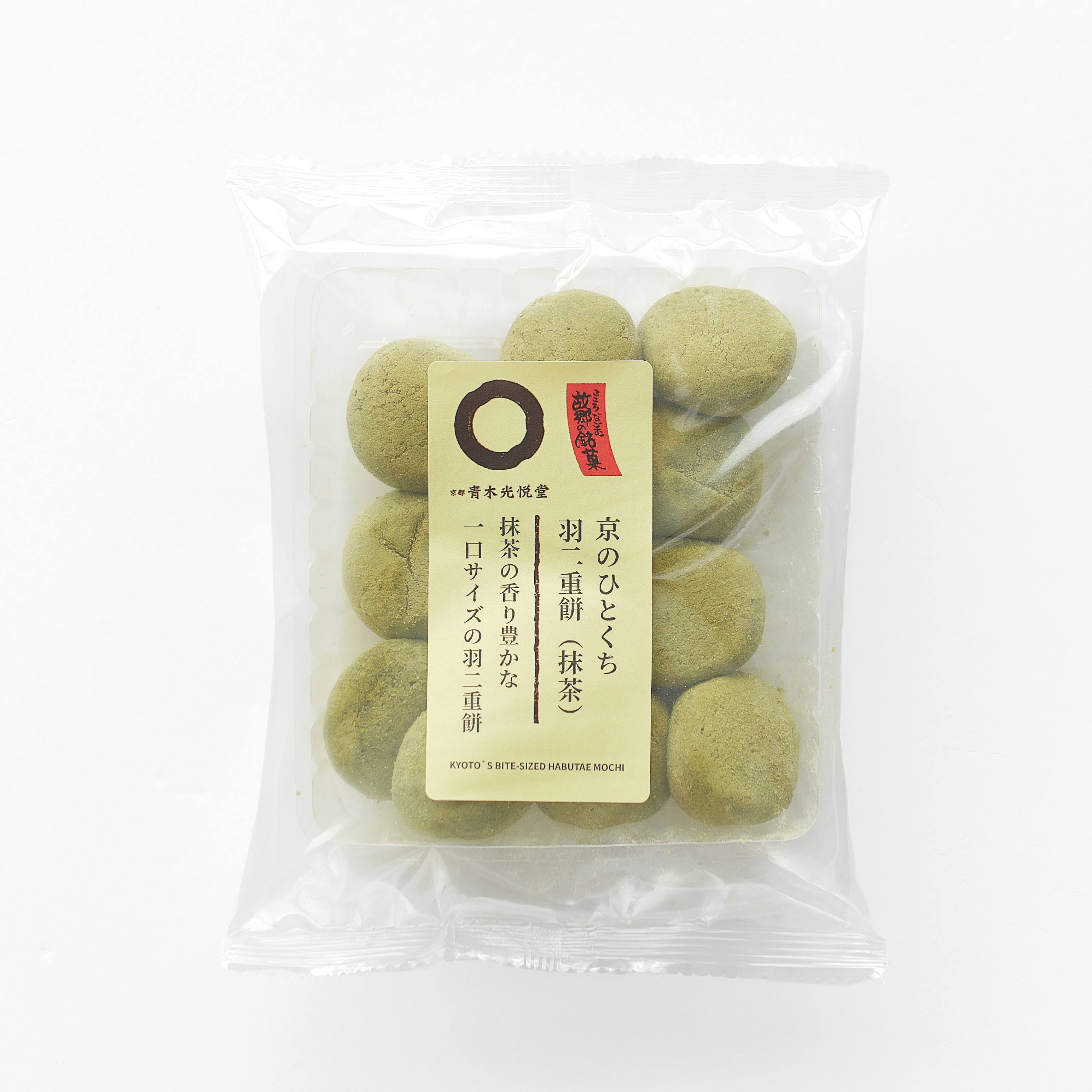 抹茶の香りがふわっと広がる、上品な甘さの一口サイズの羽二重餅です。