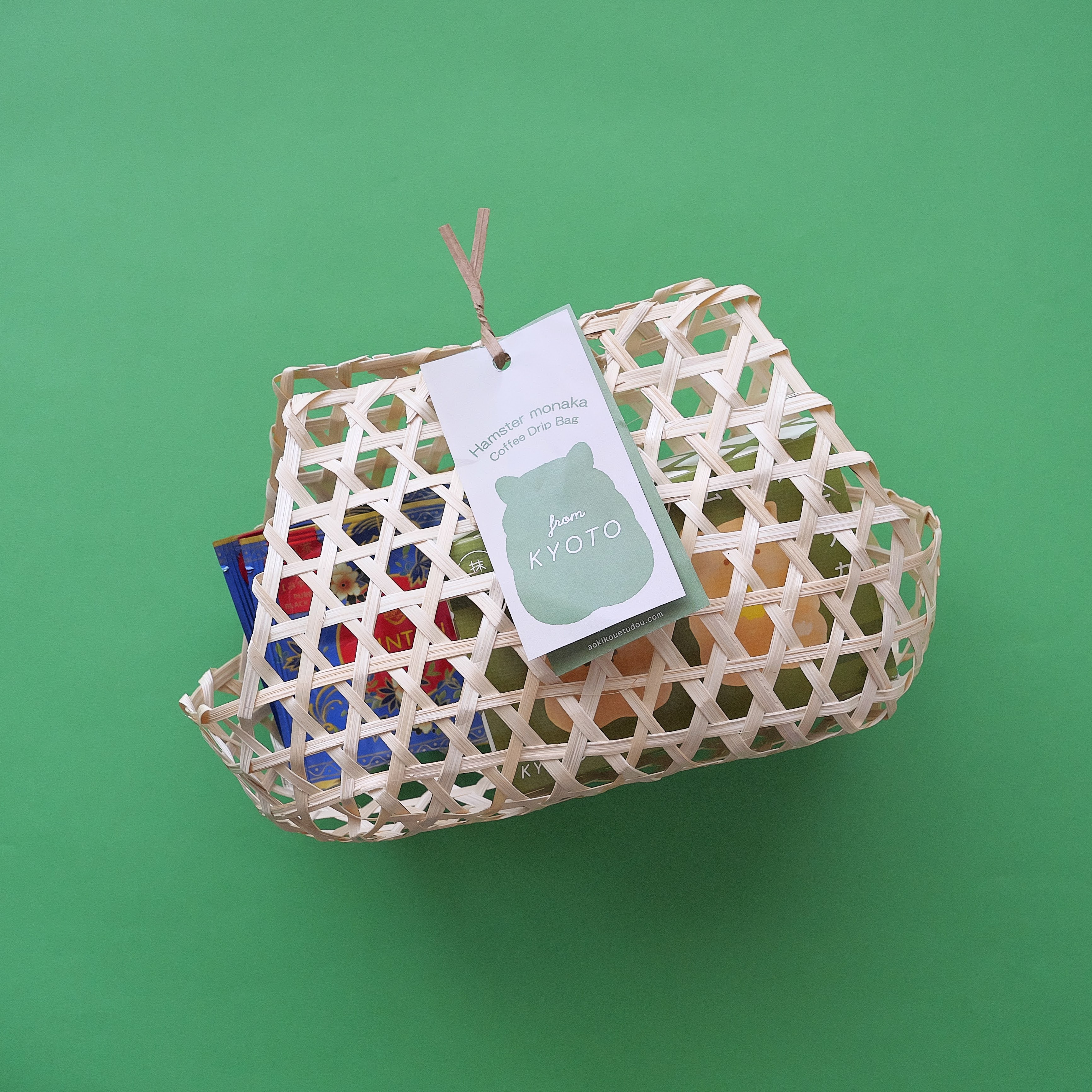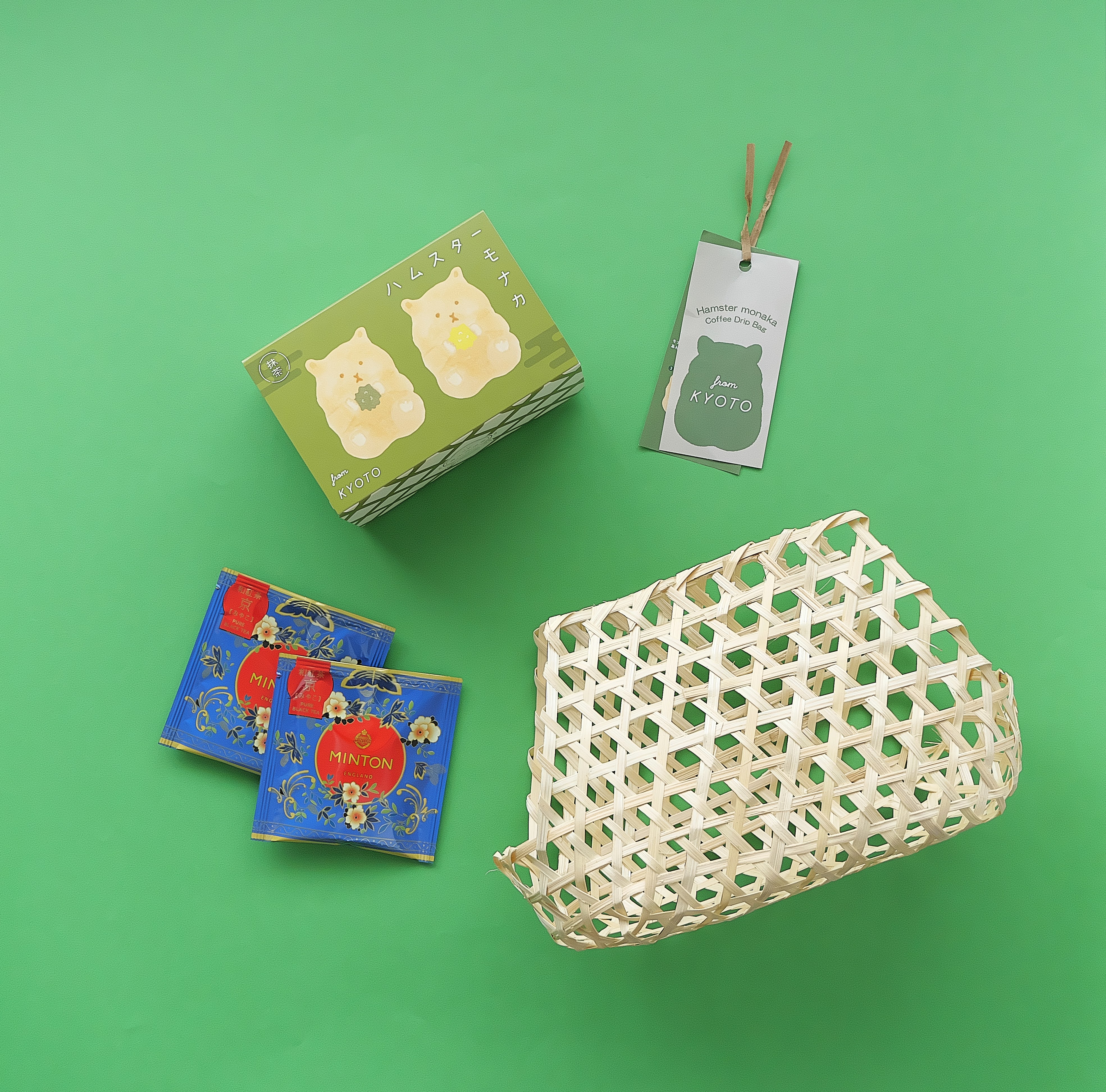 竹かごギフトセット(ハムスターモナカ抹茶2個入+和紅茶2p)