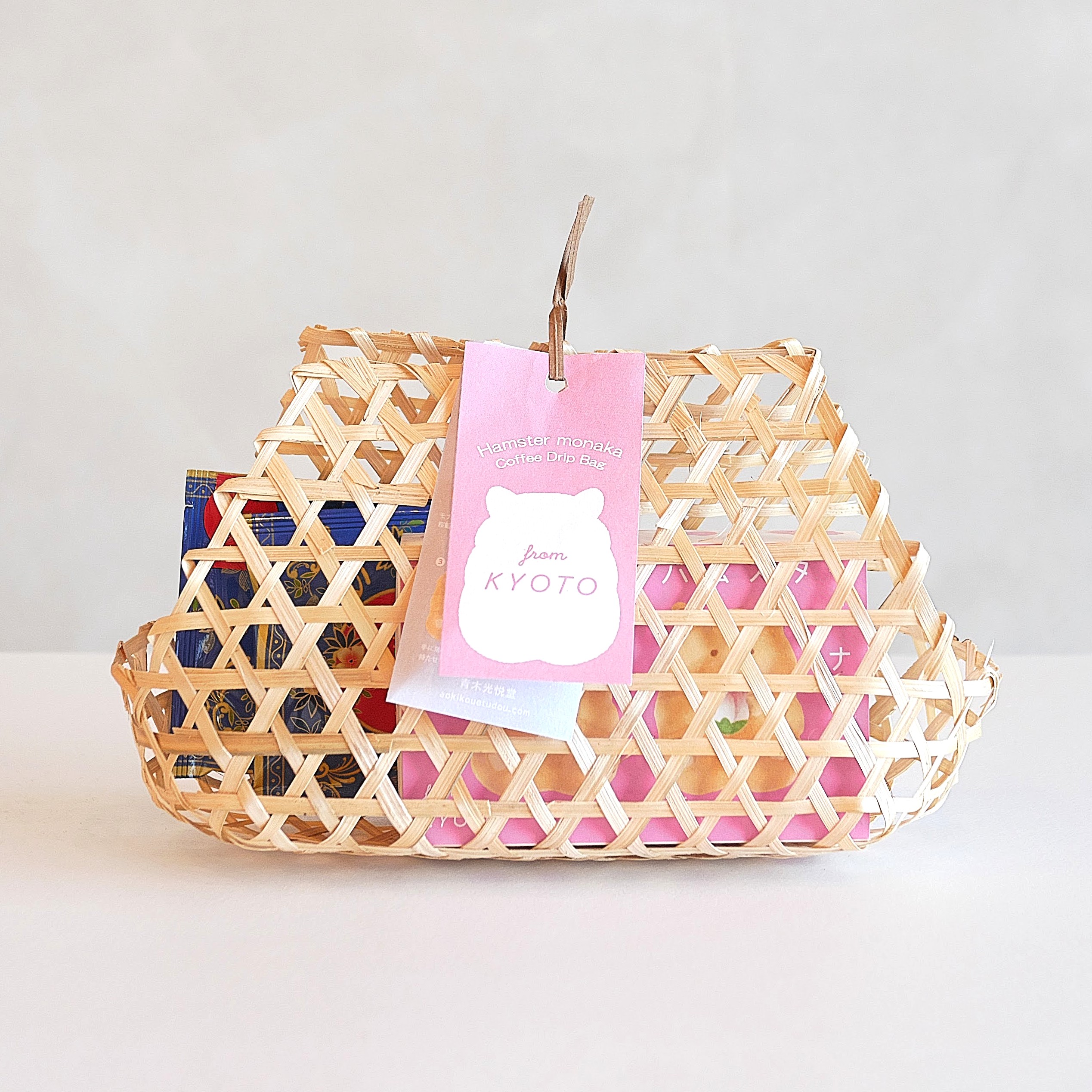 竹かごギフトセット(ハムスターモナカ+和紅茶)春限定