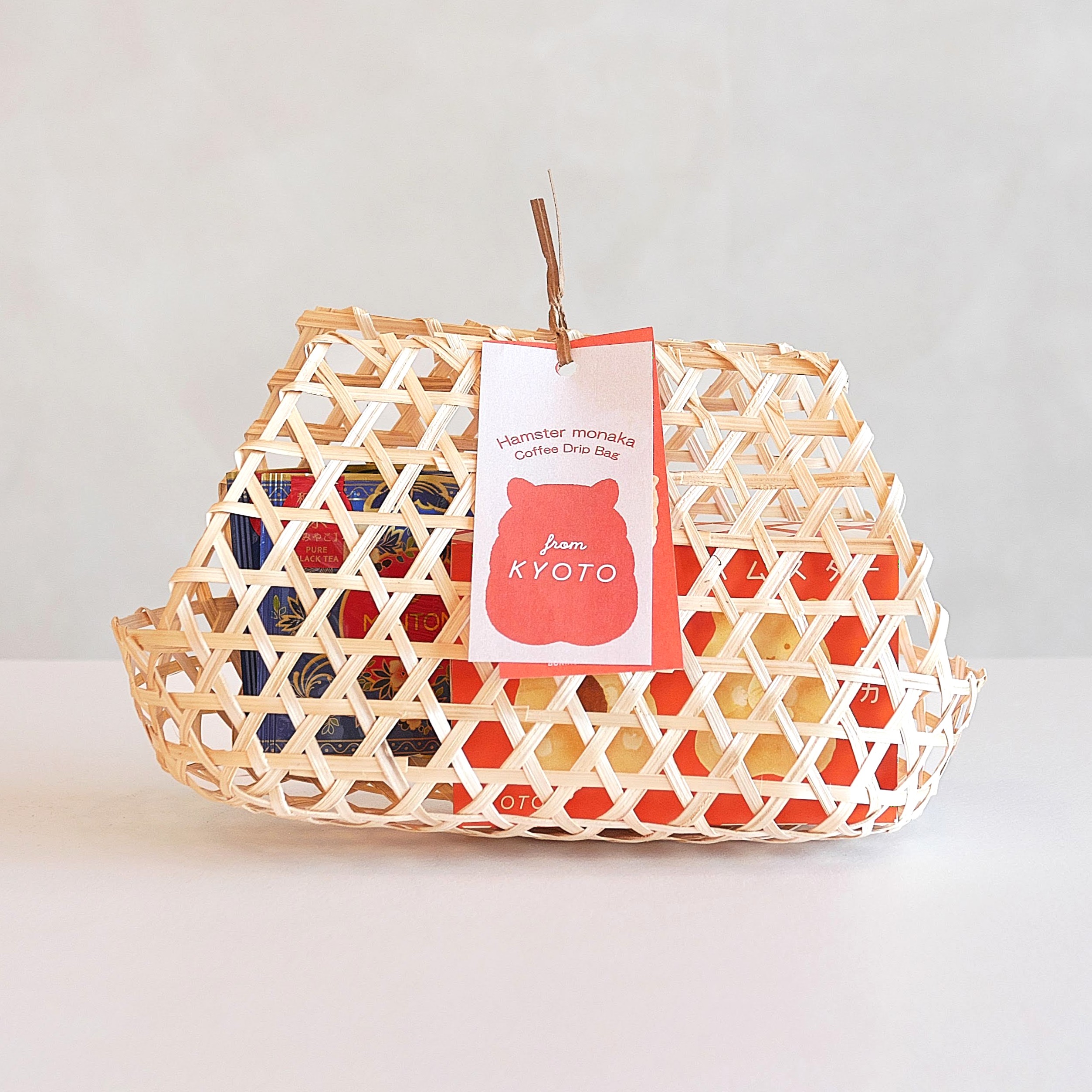 竹かごギフトセット(ハムスターモナカ+和紅茶)オリジナル